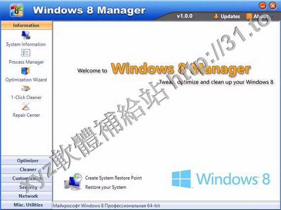 expectations.Windows 8 Manager是一個系統工具,可以幫助你優化,調整,修復