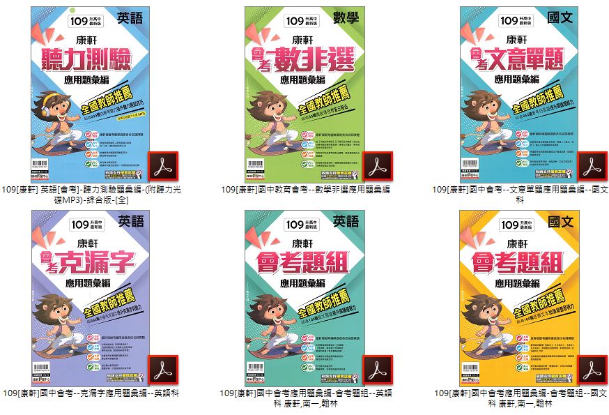 109年 國中會考 康軒 英語聽力測驗題彙編+英語克漏字應用題彙編+數學非選應用題彙編+國文文意單題應用題彙編(含英語聽力測試MP3) 康軒會考題彙DVD版