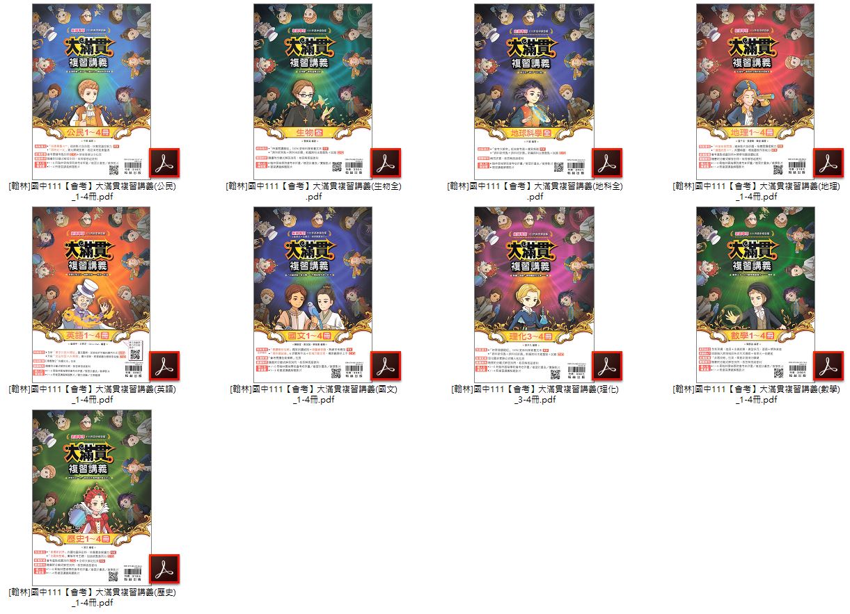 • 110年國中會考 翰林 大滿貫 總複習講義 全科目 講義光碟