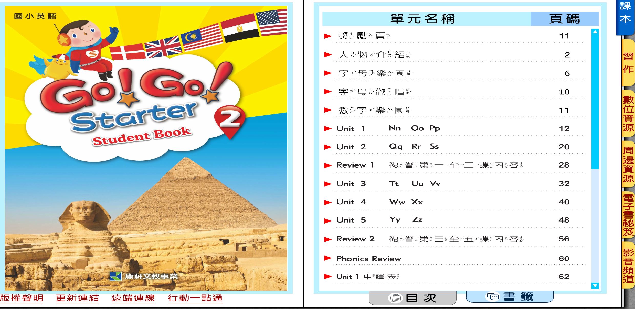 111學年下學期 國小 康軒版 英語電子書 Go!Go! starter 第2冊(含課本、習作含解答) 教學光碟