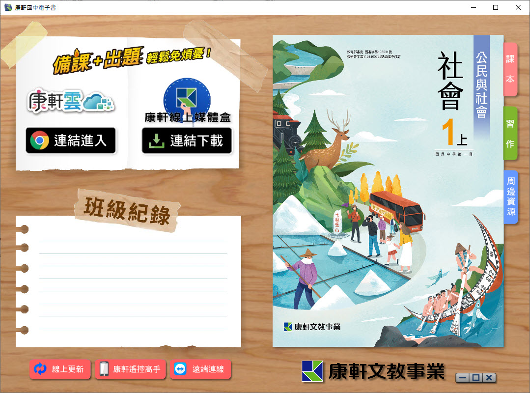 112學年上學期 國中 康軒版 公民電子書 1年級(含課本、習作含解答、教學資源)教學光碟