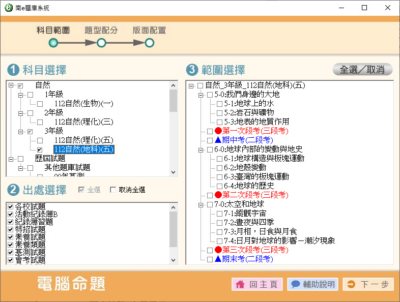 112學年上學期 國中命題光碟 南一版 1-3年級 自然(108課綱) 題庫光碟