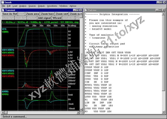 Smash 為法國 Dolphin Integration公司所發展之混合信號兼顧多層次模擬軟體,