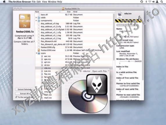 • The Archive Browser v1.1 MacOSX 英文正式版(解壓縮軟體)