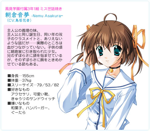 本作是初音岛的钱前作,看标题就知道,至于故事也是发生在有不枯萎的樱花树的初音岛上,又是风见学园,具体的连官网页也没有,图片也暂缺。官网就只有很少的一段介绍。