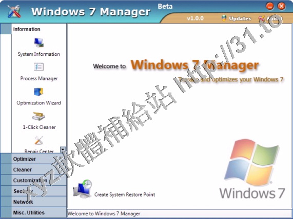 • Yamicsoft Windows 7 Manager v3.0.8.5 英文正式版(Widnows7 總管是優化和設置軟體)